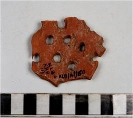 | Description / विवरण | A fragment of a perforated jar of red ware of fine fabric. |
