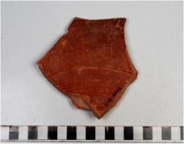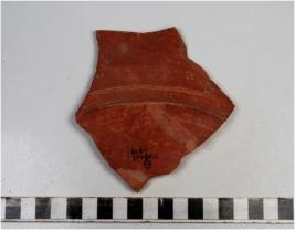 | Description / विवरण | A fragment of a dish of red ware with broken rim, of medium fabric treated with red slip. |