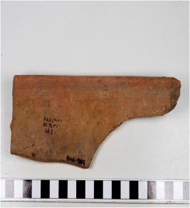 | Description / विवरण | A fragment of a basin of red ware with beaded rim, tapering sides of medium fabric and ill fired. |