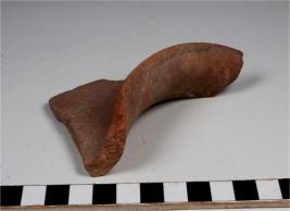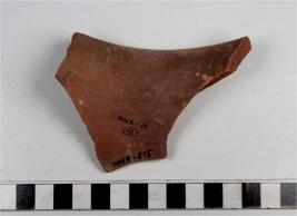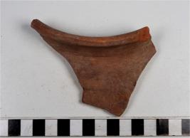 | Description / विवरण | A fragment of a vase of red ware with out turned rim, concave neck straight sides of medium fabric. |
