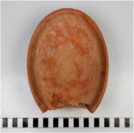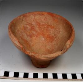| Description / विवरण | A fragment of a bowl of red ware with featureless rim, tapering sides, disc base of medium fabric. |