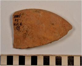 | Description / विवरण | A fragment of a bowl of red ware with incurved rim, tapering sides of medium fabric. |