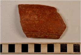| Description / विवरण | A fragment of a bowl of red ware with broken rim, straigth sides treated with red slip of fine fabric fine texture. |