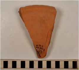 | Description / विवरण | A fragment of a base of dish on stand of red ware with tapering sides, of medium fabric. |