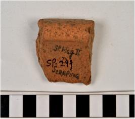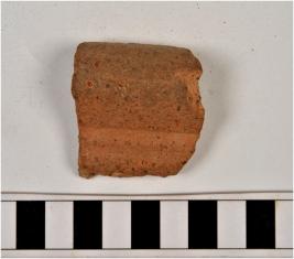 | Description / विवरण | A fragment of a pot of dull red ware with externally thickened rim and straight sides of coarse fabric. |