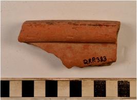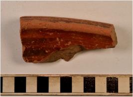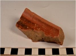 | Description / विवरण | A fragment of a basin of red ware with externally thickened rim treated with red slip of fine fabric fine texture. |