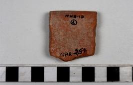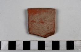 | Description / विवरण | A fragment of a basin of red ware with featureless rim, straight sides of medium fabric. |