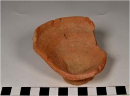 | Description / विवरण | A fragment of a bowl of red ware with inturned rim, tapering sides, disc base of medium fabric. |