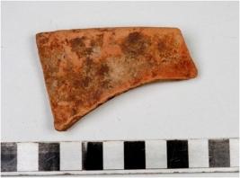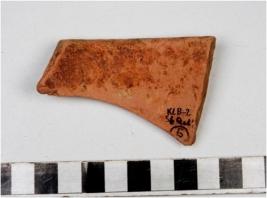| Description / विवरण | A fragment of a rim of red ware with featureless rim, tapering sides of medium fabric. |