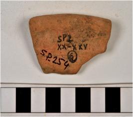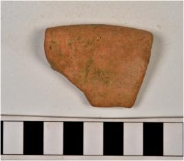 | Description / विवरण | A fragment of a pot of dull red ware with thickened rim and oblique sides of coarse fabric. |