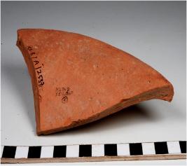 | Description / विवरण | A fragment of a base of dish on stand of red ware with tapering lower sides of medium fabric fine texture. |