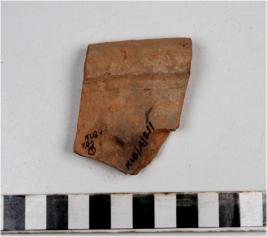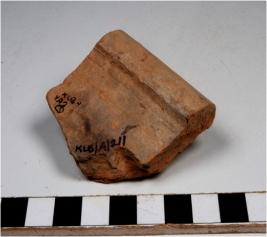| Description / विवरण | A fragment of a bowl of red ware with nail headed rim, straight sides of medium fabric. |