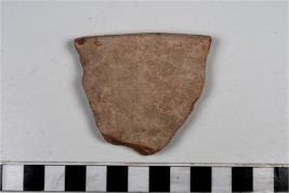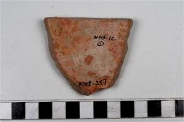 | Description / विवरण | A fragment of a basin of red ware with featureless rim, straight sides of medium fabric. |