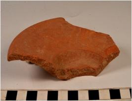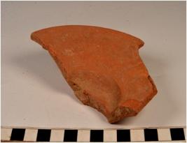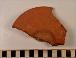 | Description / विवरण | A fragment of a lid of red ware with slightly out turned rim, tapering upper profile of fine fabric fine texture and well levigated smooth surface. |