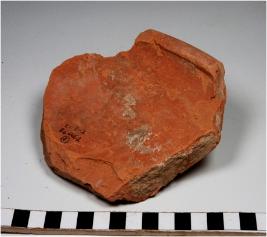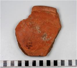 | Description / विवरण | A fragment of a dish of red ware with inturned flat top rim, shallow base of thick fabric. |