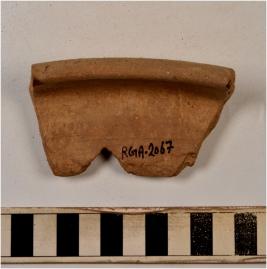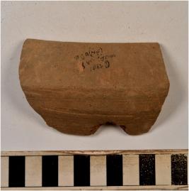| Description / विवरण | A fragment of a bowl of red ware with incurved rim having flat circular base and straight sides of medium fabric. |