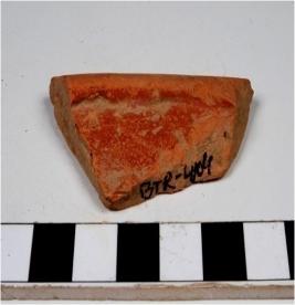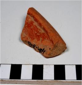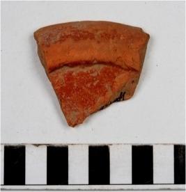 | Description / विवरण | A fragment of a dish of red ware with internally thickened rim, flat base of medium fabric. |