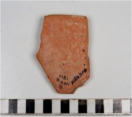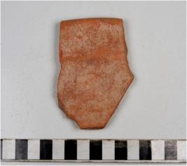 | Description / विवरण | A fragment of a bowl of red ware with featureless rim, straight sides of medium fabric. |