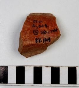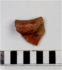 | Description / विवरण | A fragment of a vase of red ware with flanged rim, concave neck, oblique sides of medium fabric. |