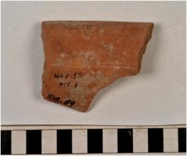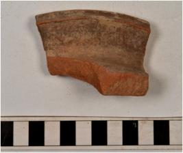 | Description / विवरण | A fragment of a vase of red ware with flared rim, concave neck and oblique sides of medium fabric. |