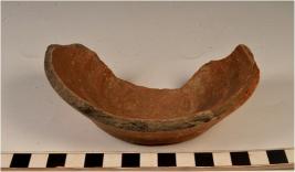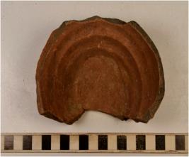 | Description / विवरण | A fragment of a bowl of red ware with broken rim, corrugated inner profile discular flat base of thick fabric sturdy texture. |