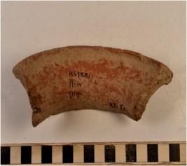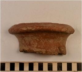| Description / विवरण | A fragment of a vase of red ware with externally thickened rim, concave neck tapering sides of medium fabric rough surface. |