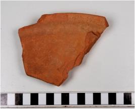 | Description / विवरण | Fragment of rim a basin of red ware with out turned rim, tapering sides of medium fabric. |