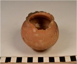 | Description / विवरण | A complete miniature pot of red ware with out turned rim, discular base of medium fabric. |