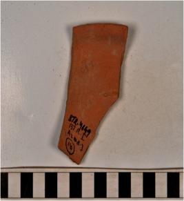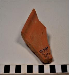 | Description / विवरण | A fragment of a deep bowl of red ware with incurved rim and oblique sides of medium fabric. |