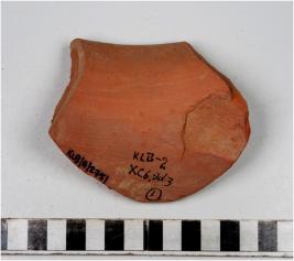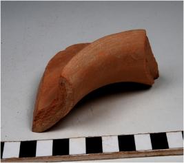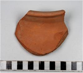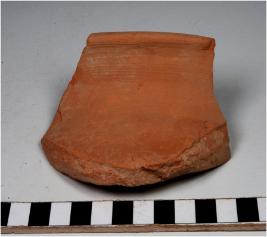 | Description / विवरण | A fragment of a pot of red ware with flared rim, concave neck, oblique sides of fine fabric. |