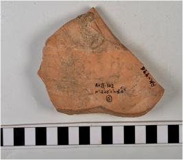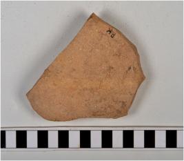 | Description / विवरण | A fragment of a base of a pot of red ware with flat base, of coarse fabric. |