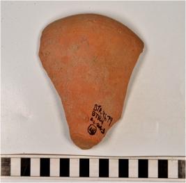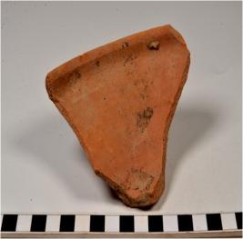 | Description / विवरण | A fragment of a basin of red ware with incurved vertical rim and straight sides of medium fabric, sturdy texture. |