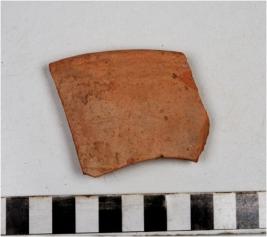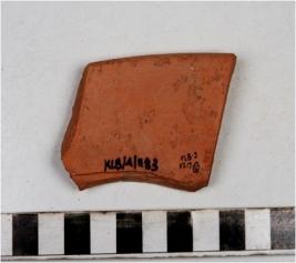 | Description / विवरण | A fragment of a bowl of red ware with featureless rim, straight sides of fine fabric. |