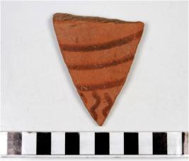 | Description / विवरण | A potsherd of red ware painted with red showing horizontal and wavy design on exterior of medium fabric. |