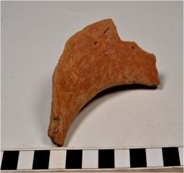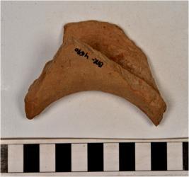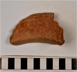 | Description / विवरण | A fragment of a basin of red ware with incurved vertical rim and straight sides of medium fabric, sturdy texture. |
