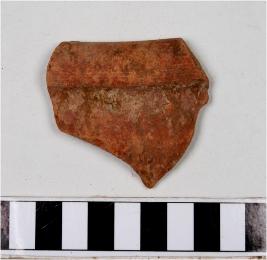 | Description / विवरण | A fragment of a bowl of red ware with externally thickened rim of thin fabric fine texture. |