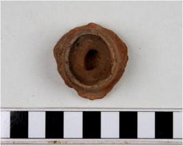 | Description / विवरण | A miniature pot like object of red ware with featureless rim, tapering profile, flat base of medium fabric and ill fired. |