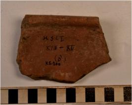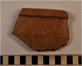 | Description / विवरण | A fragment of a basin of red ware with incurved rim, straight sides of thick fabric and sturdy texture. |