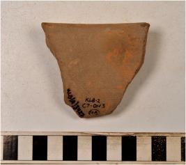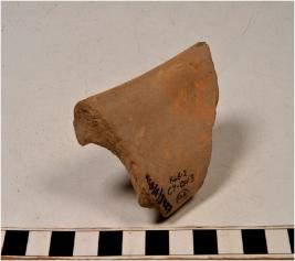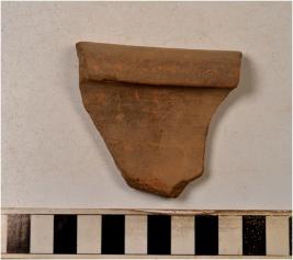 | Description / विवरण | A fragment of a vase of red ware with out turned rim, concave neck, oblique sides of medium fabric and ill fired. |