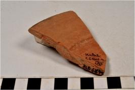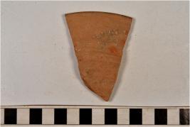 | Description / विवरण | A fragment of a dish of red ware with flared rim, flat base of fine fabric. |