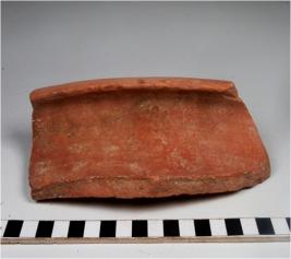 | Description / विवरण | A fragment of a jar of red ware with flanged rim, oblique sides of medium fabric. |