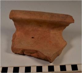 | Description / विवरण | A fragment of a storage jar of red ware with flanged rim, concave neck, straight sides of thick fabric. |