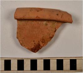 | Description / विवरण | A fragment of a basin of red ware with out turned rim, straight sides of thick fabric. |