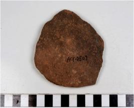 | Description / विवरण | A fragment of a sagger base of red ware of coarse fabric ill fired core and smoky surface. |
