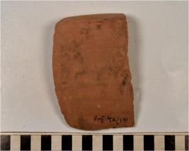 | Description / विवरण | A fragment of a basin of red ware with incurved projecting rim tapering sides of vertical profile medium fabric. |