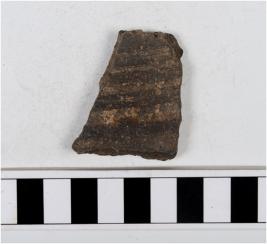 | Description / विवरण | A fragment of a potsherd with incised horizontal lines on the surface. |