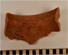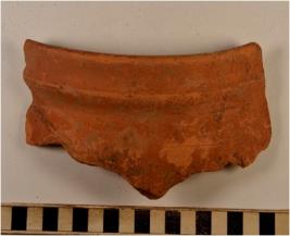 | Description / विवरण | Fragment of rim a pot of slipped red ware with internally thickened rim, having rib on the concave neck of medium fabric. |
