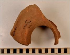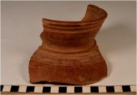 | Description / विवरण | A fragment of a vase of slipped red ware with out turned rim having ribs spreading shoulder of medium fabric fine texture with bright red surface. |