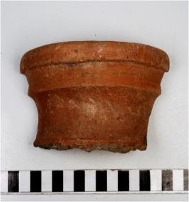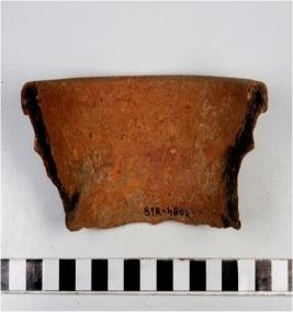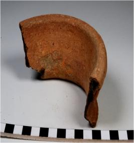 | Description / विवरण | A fragment of a vase of red ware with externally out turned rim having rib, concave neck, oblique sides of medium fabric. |
