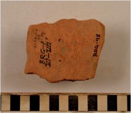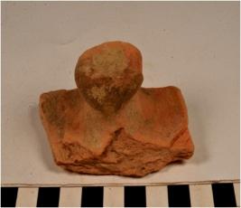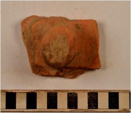 | Description / विवरण | A fragment of a lid of red ware with disc shaped knob of medium fabric. |